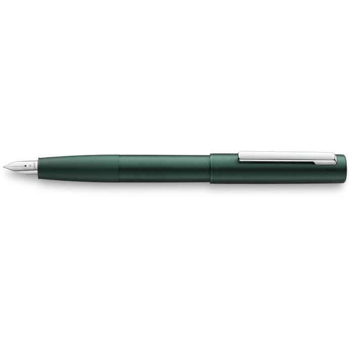 aion全新永恆系列 強調簡約時尚風格同時具備功能設計,無縫式一體成型的筆身與筆蓋,實心霧面絲狀陽極氧化鋁金屬材質,圓弧霧面刷紋握把,不銹鋼金屬筆夾,LAMY logo以浮雕方式呈現於筆夾側方,霧面橄欖綠色,鋼筆搭配全新的不鏽鋼筆尖設計,可使用T10鋼筆用卡式墨水管或Z27吸水器。