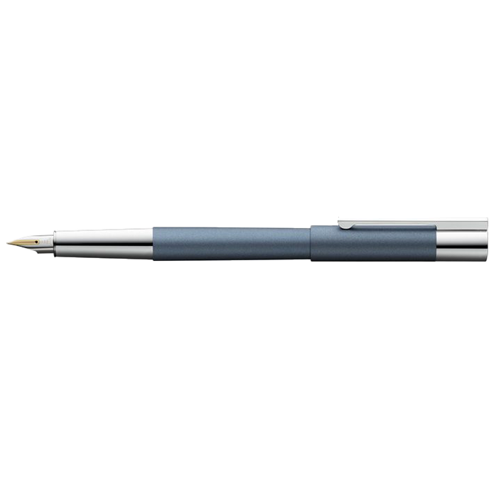 不銹鋼金屬筆身搭配霧面淡藍色系烤漆,高感光鍍鉻筆夾前端,14K金筆尖,可使用T10卡水或Z27吸水器。